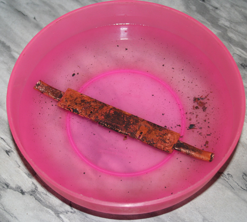 Паяем (не пинать за капли припоя, медно-серебрянный припой легко плавится, вот и накапал, а плавить не было времени, уж пусть лучше будет мало окалины) и получаем почти готовый водоблок, единственное что нам мешает – окалина… которую ни в ком случае не надо счищать наждачной бумагой (снимите много метала), его лучше снять химическим путем (многие замачивает детали в кока-коле или фанте) но мы пойдем более гуманным способом и замочим детали в слабом растворе фосфорной кислоты (можно серной, даже в уксусе можно) главное чтобы раствор был не сильнее 5-10%!