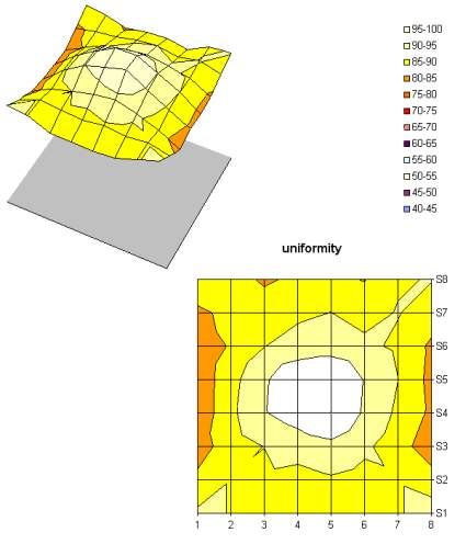 Равномерность засветки XL775D является хорошей, но не более. Явных ляпов нет, но отдельные неровности все же есть. В целом не хуже, а может быть лучше остальных.