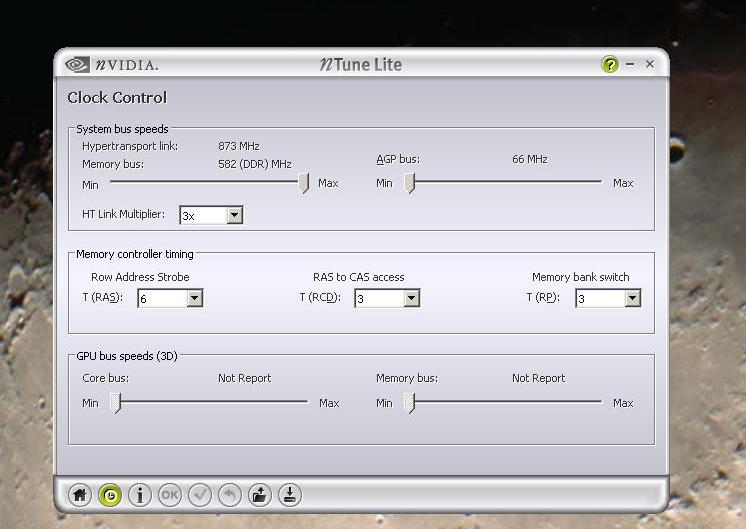 Недавно столкнулся с проблемой обновленного БИОСа для своей платы (может это характерно только для данного производителя), но все же рассмотри еще одну программу, которая может помочь при разгоне. Программа nTune от NVIDIA, которая прилагается на диске с драйвером для платы.