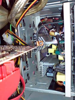 Один из двух винчестеров так-же пришлось ставить в крайне не благоприятное, с точки зрения охлаждения, место