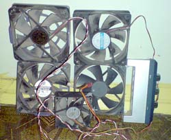 <br/>Не оправдавшиеся надежды так кулер известной марки расцентроваля на первой-же неделе эксплуатации, было решено этим путем не идти. Осложняло компоновку и то что в системе использовалось два блока питания, один из которых размещался в корзине HDD
