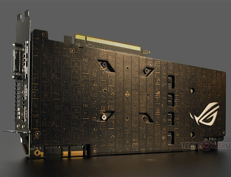 Asus ROG Strix GeForce GTX 1080 Ti Assassin's Creed Origins Edition – еще одна уникальная видеокарта с божественными чертами, на этот раз египетскими. Внешний вид этой видеокарты сразу очаровывает, как будто это артефакт, который изъяли из пирамиды в Гизе. На поверхности видеокарты вы можете увидеть иероглифические письмена и логотипы Assassin's Creed. Смотрится все это просто потрясающе!