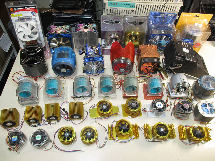 Бывает, люди коллекционируют даже системы охлаждения: процессорные кулеры! Вот один такой пример. Свести бы этих любителей собирательства вместе – получились бы отличные системники, но как говорится - каждому своё!