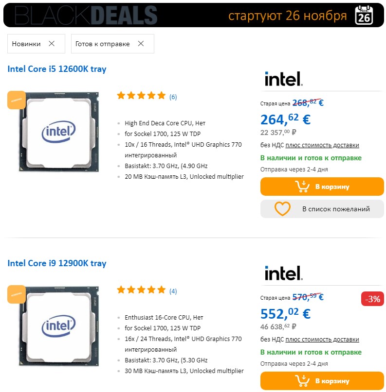 Так и есть, на 12-е поколение процессоров Intel в Computer Universe скидок нет, а жаль.