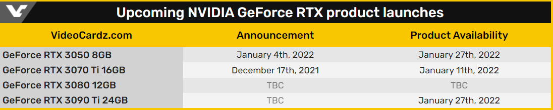 Ещё одна грядущая новинка января 2022 — RTX 3070 Ti, которая должна появиться в продаже 11 января.
