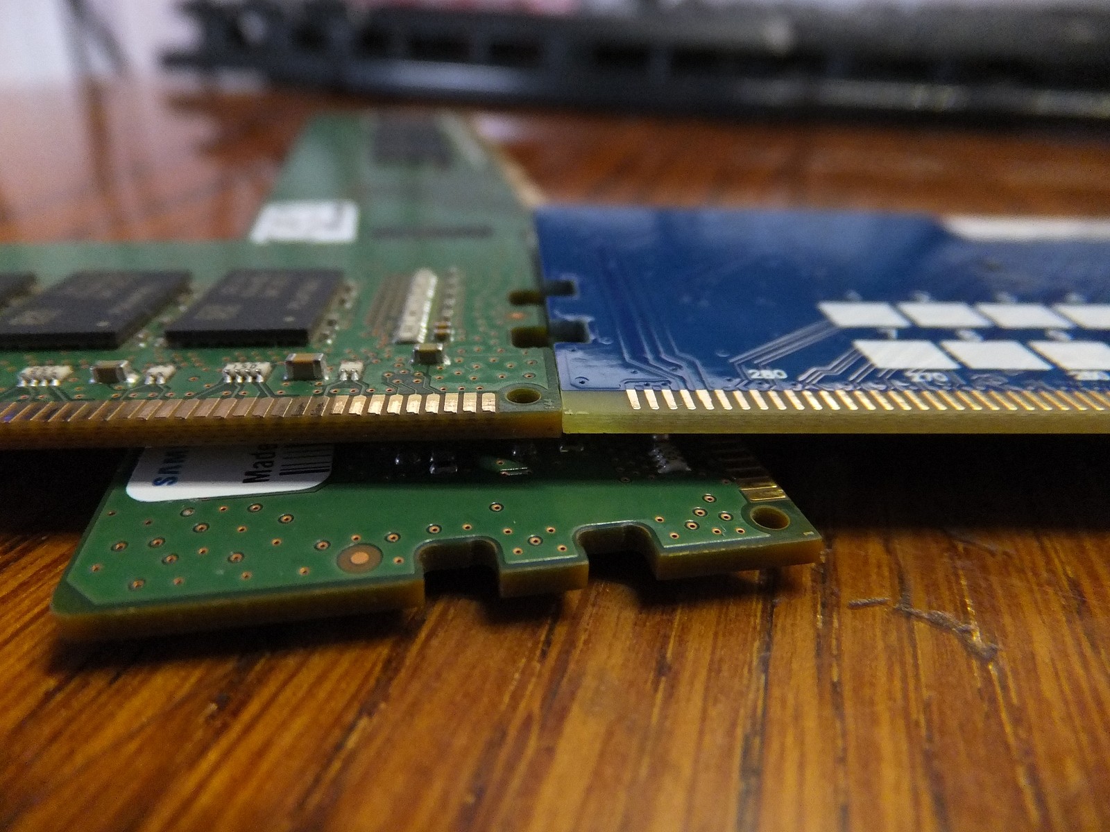 Если посмотреть внимательнее, то можно заметить что китайские переходники значительно более тонкие чем текстолит реальной ОЗУ от Samsung.