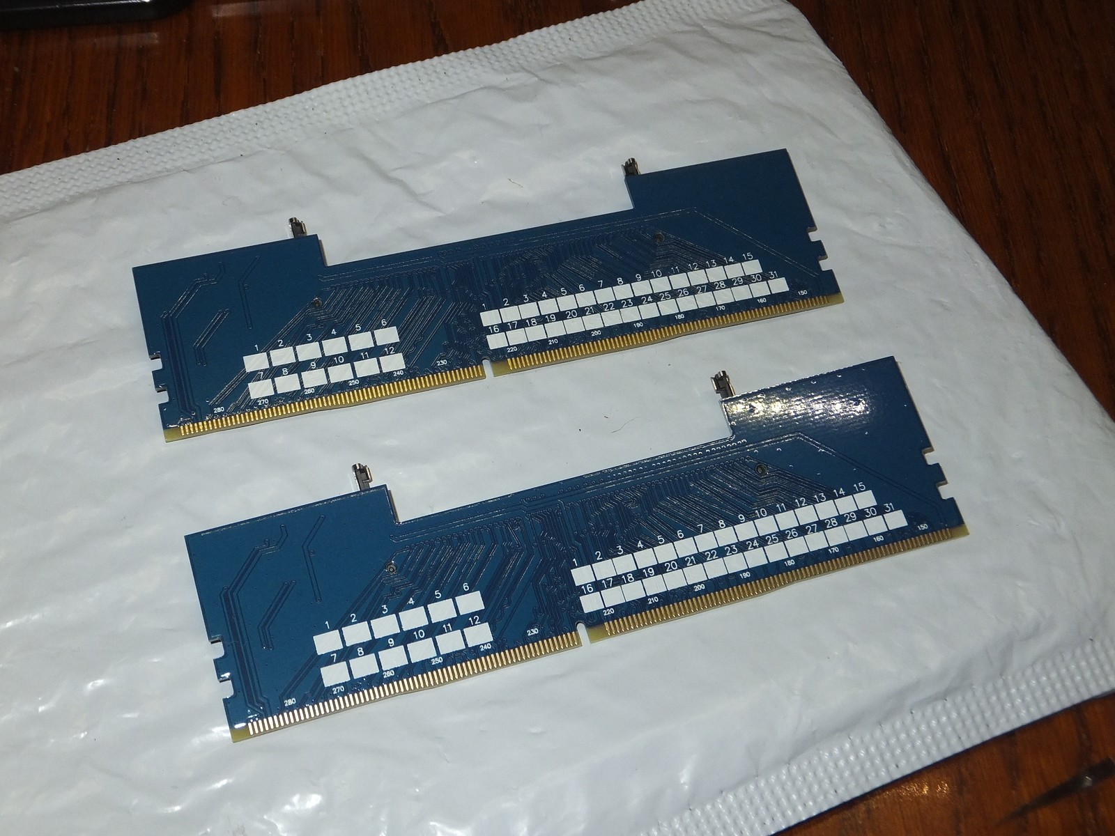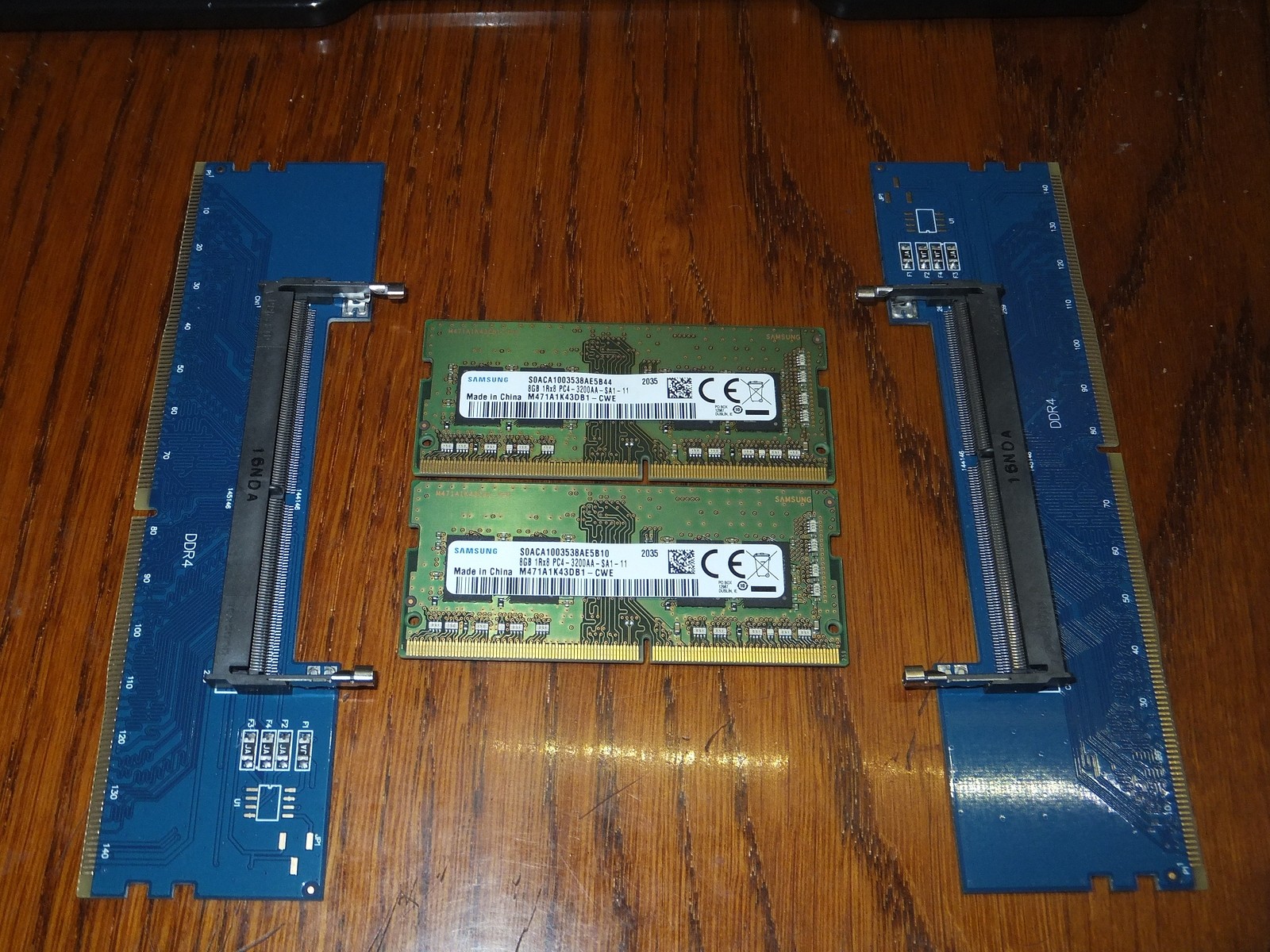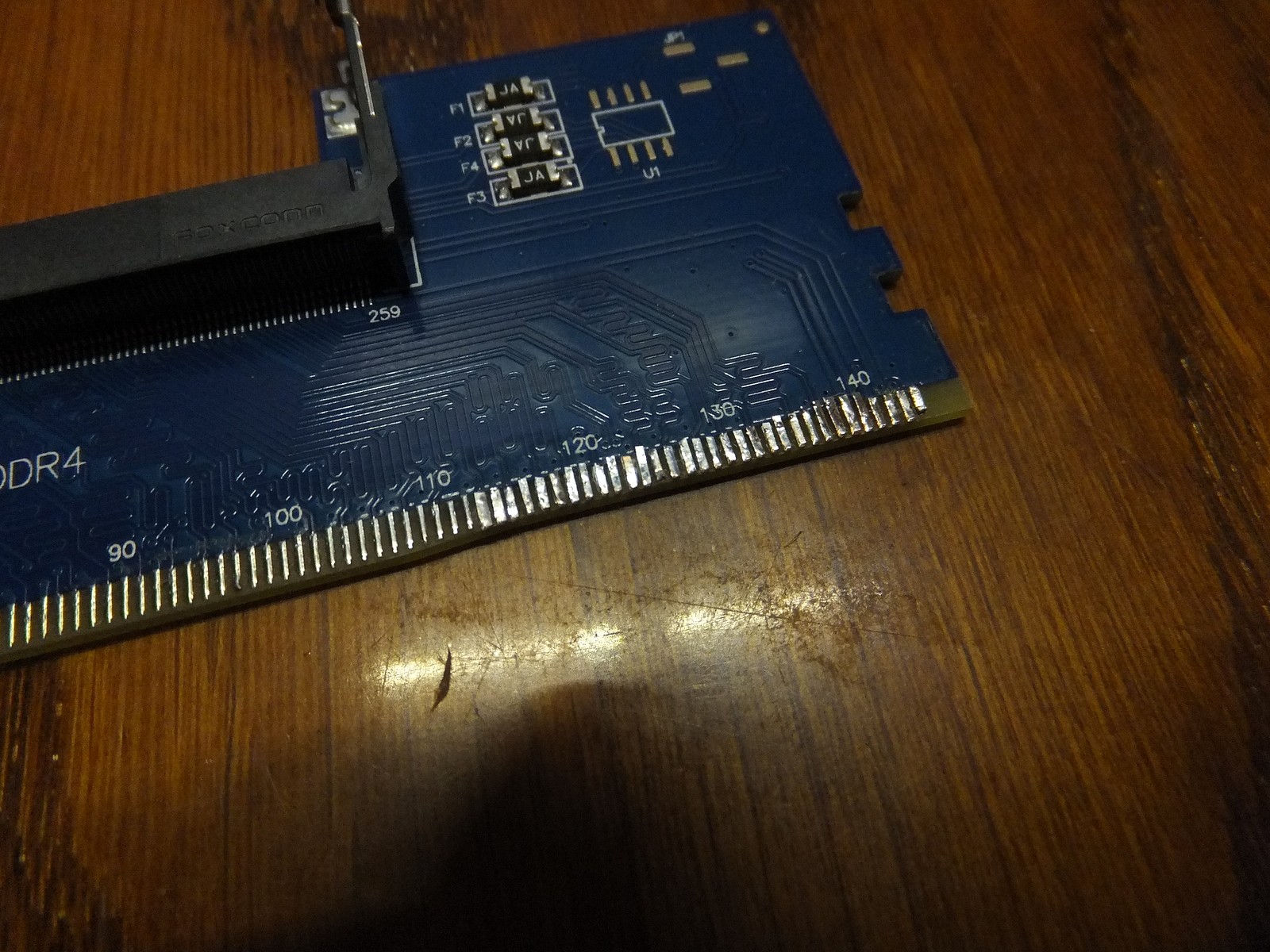 В общем покупать у китайцев переходники для ОЗУ сомнительная идея, возможно есть экземпляры правильной толщины, возможно кому-то повезло и тонкий текстолит заработал, но это не мой случай, у меня просто не получилось как-либо протестировать переходники китайские.