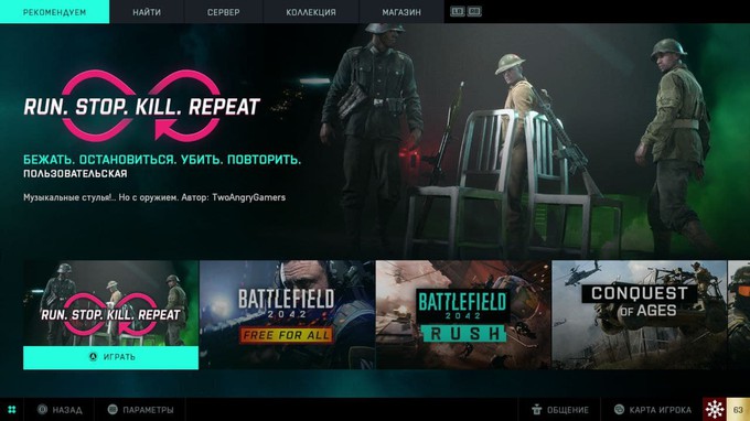 В ту же самую подборку Portal добавили новый режим "Run. Stop, Kill. Repeat. Кто смотрел сериал "Игра в кальмара" сразу узнает, что это аналог игры "Красный свет, зелёный свет". В Battlefield 2042 вам дают нож и 20 секунд, все это время вы бегаете по карте, а по истечению времени все пользователи останавливаются на своем месте, получают оружие, и должны убить противника, который оказался близко к вам и не успел убить вас. Это FFA режим, а ограничение на убийства: 15. Правда режим в подборке будет доступен только до 20 января, что насчёт фан серверов - не понятно.