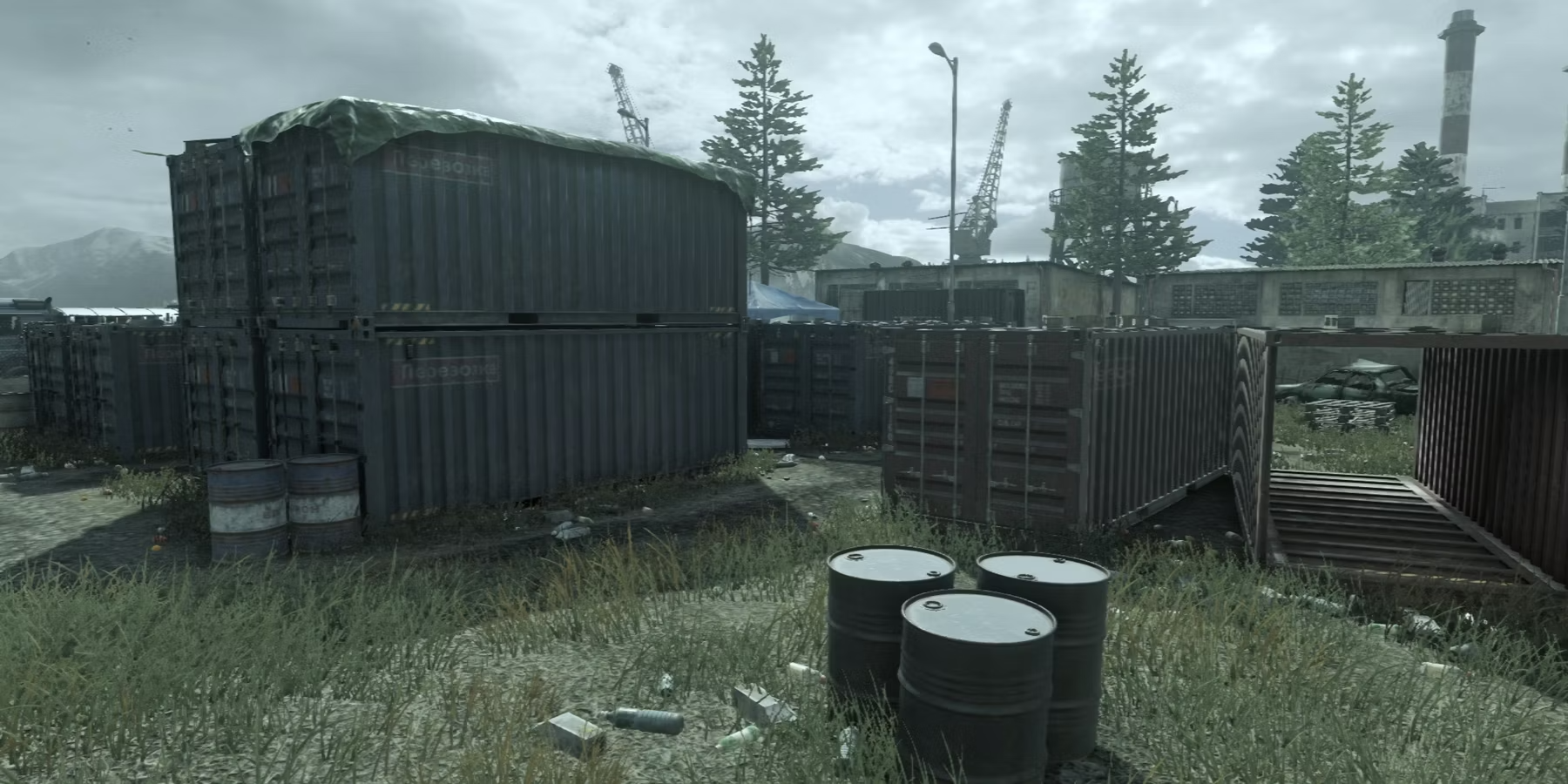 Ранее карта была не на судне, а в порту, а еще раньше и в сельской глуши, это была сверхкомпактная карта с 8 контейнерами на ней. Как по мне, первая, именно первая версия локации самая интересная для меня, хотя, и довольно сложна, чтобы на ней играть как профи, из-за несбалансированных точек спавна. Переработанная версия стала больше в 2019 году, и в целом, тоже пойдет, однако таких же безумных перестрелок там уже не было, это походило на более стандартный геймплей Call of Duty. В этот раз разработчики еще больше расширили локацию и добавили возможность плавать в океане, что хорошо, однако жалко, что не вернули такой же сверхкомпактности, как это было в первой части Modern Warfare 2007 года.