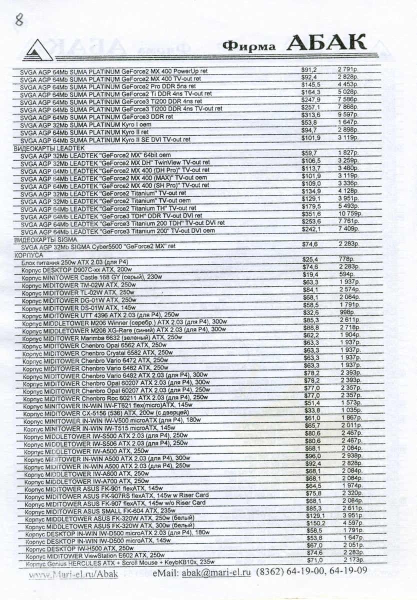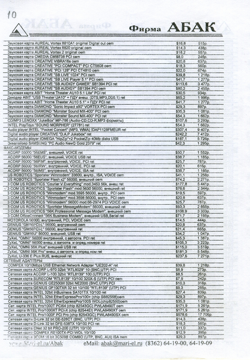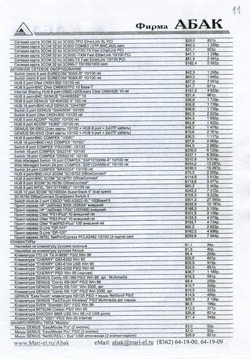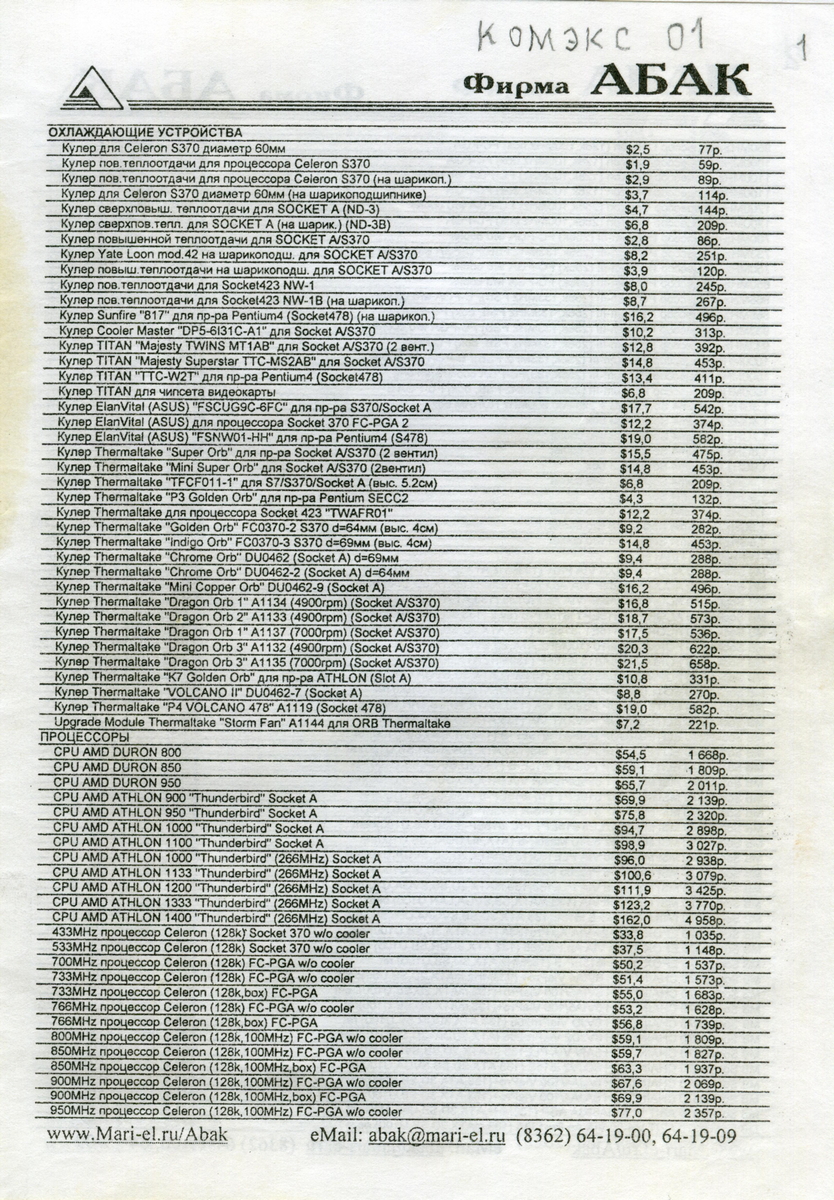 Если в прошлый раз бумажки с ценами были получены непосредственно в магазинах для целей, которые мы узнаем в последней части. То на этот раз, прайсы были добыты на выставке "Комэкс'01", прошедшей осенью 2001 года. К счастью, все они содержат в себе рублёвые эквиваленты.