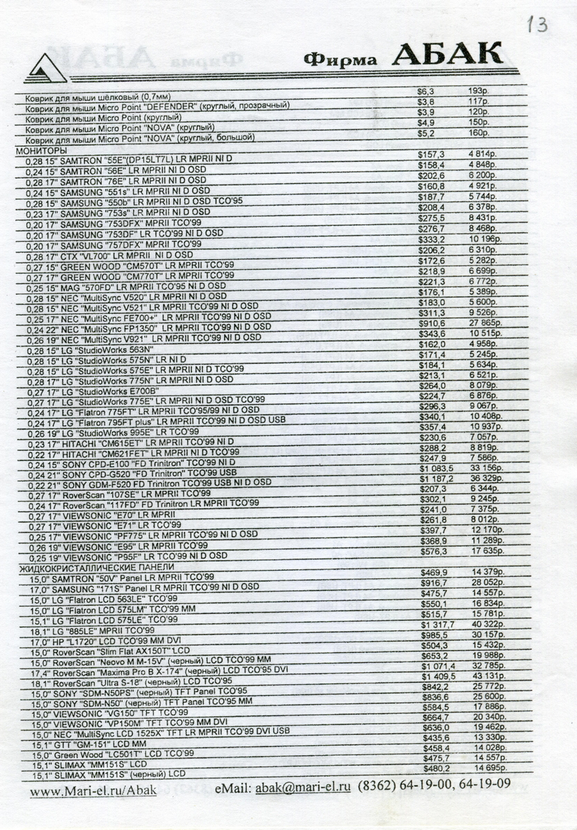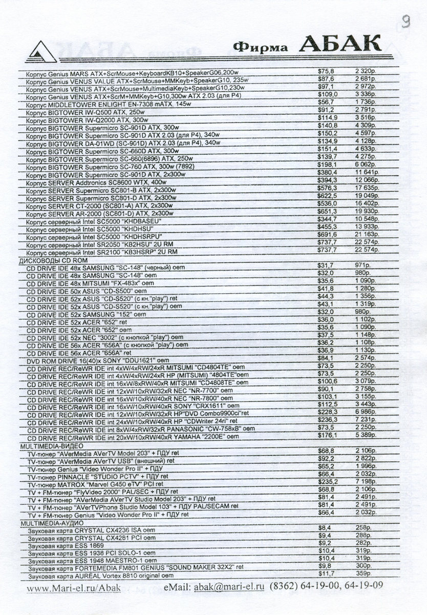 Компьютерные цены прошлого века (2001 год окончание) часть 4