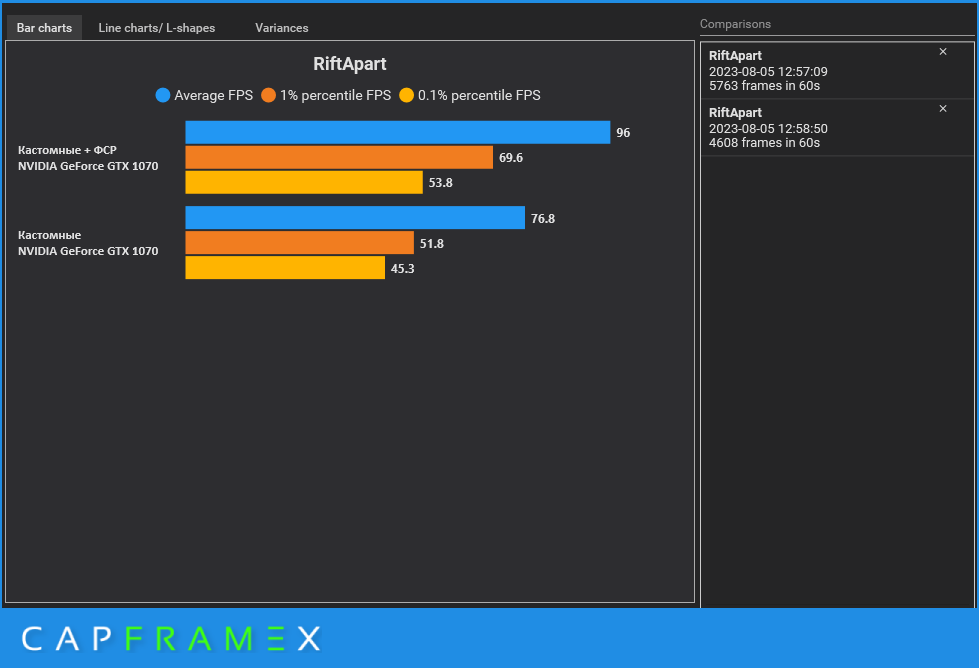 Запись тестового отрезка производился программой CapFrameX.