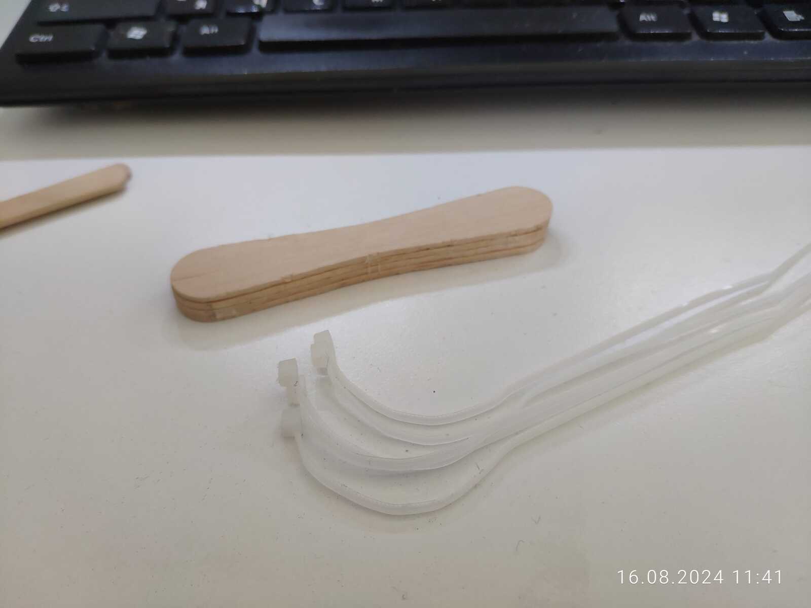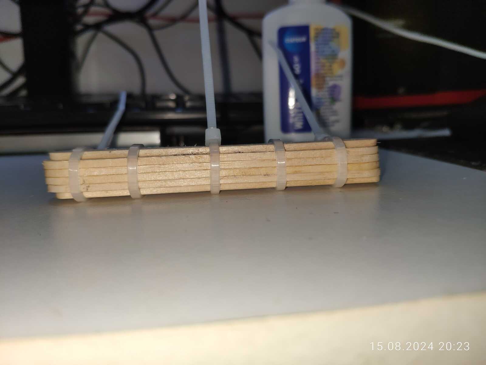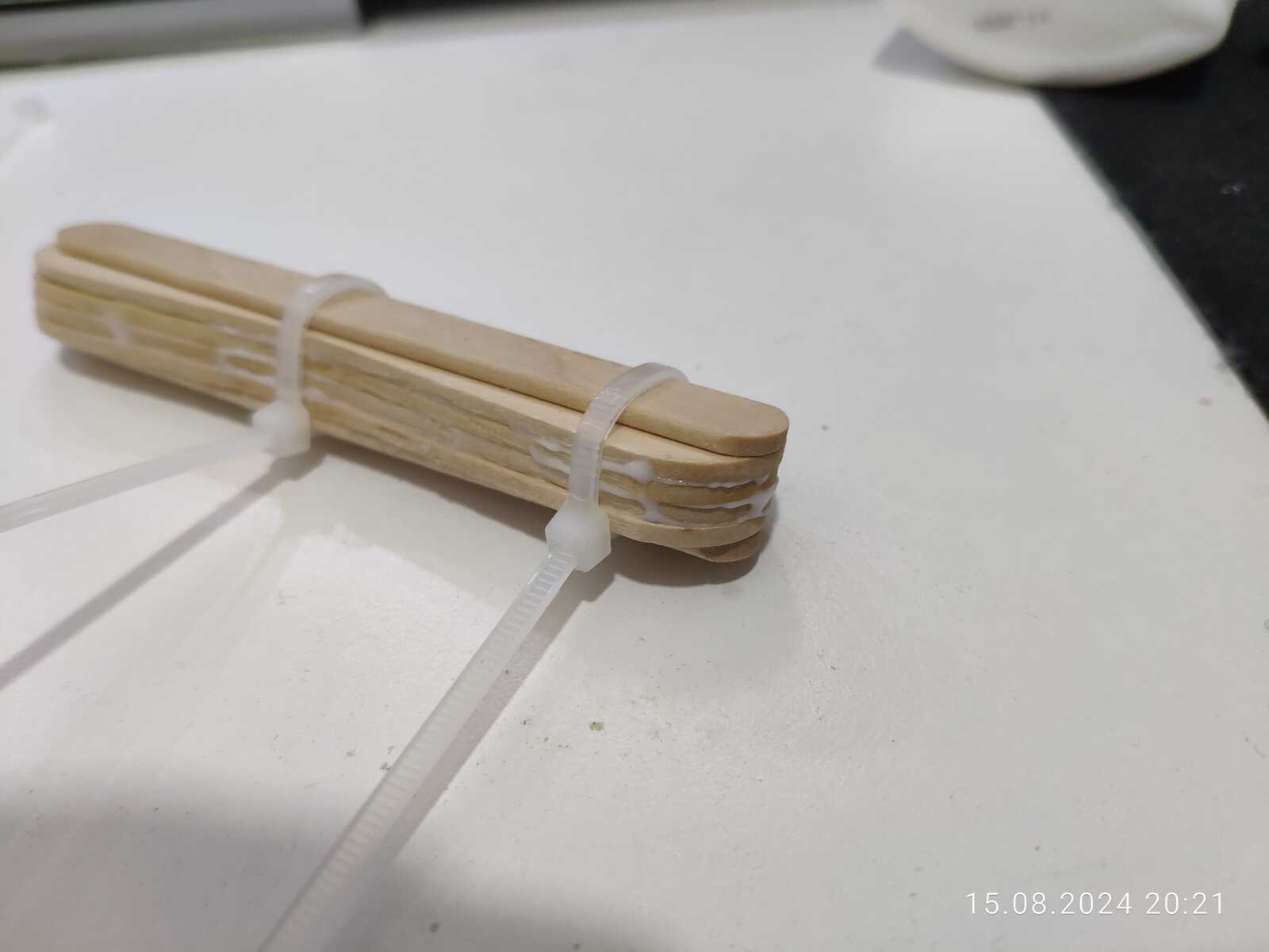 Эх, вот незадача, снова расслоились палочки от мороженого по среднему шву, не беда, склеиваю ещё раз: