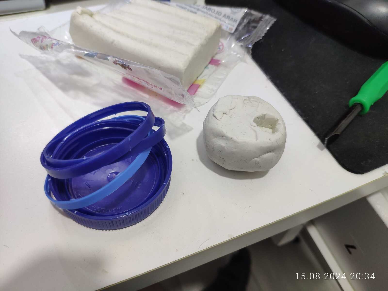 Попутно смотрел в сторону других способов изготовления нужных мне деталей, и тут под руку попался кусок пластилина, но с ним есть проблема, он плавится при нагревании, использовать как форму невозможно: