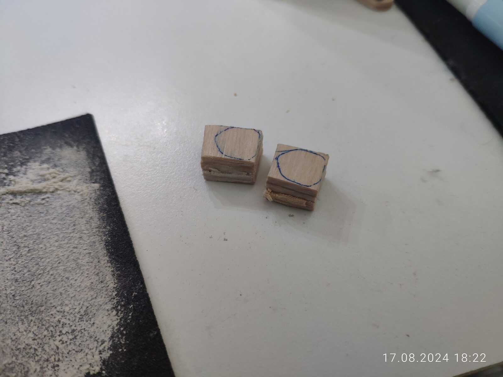 Пока склеивается одна из заготовок, были грубо вырезаны две кнопки, всё так же канцелярским ножом, и ничего не развалилось на этот раз, ибо работал аккуратнее, чтобы отламывать куски можно было без помощи плоскогубцев: