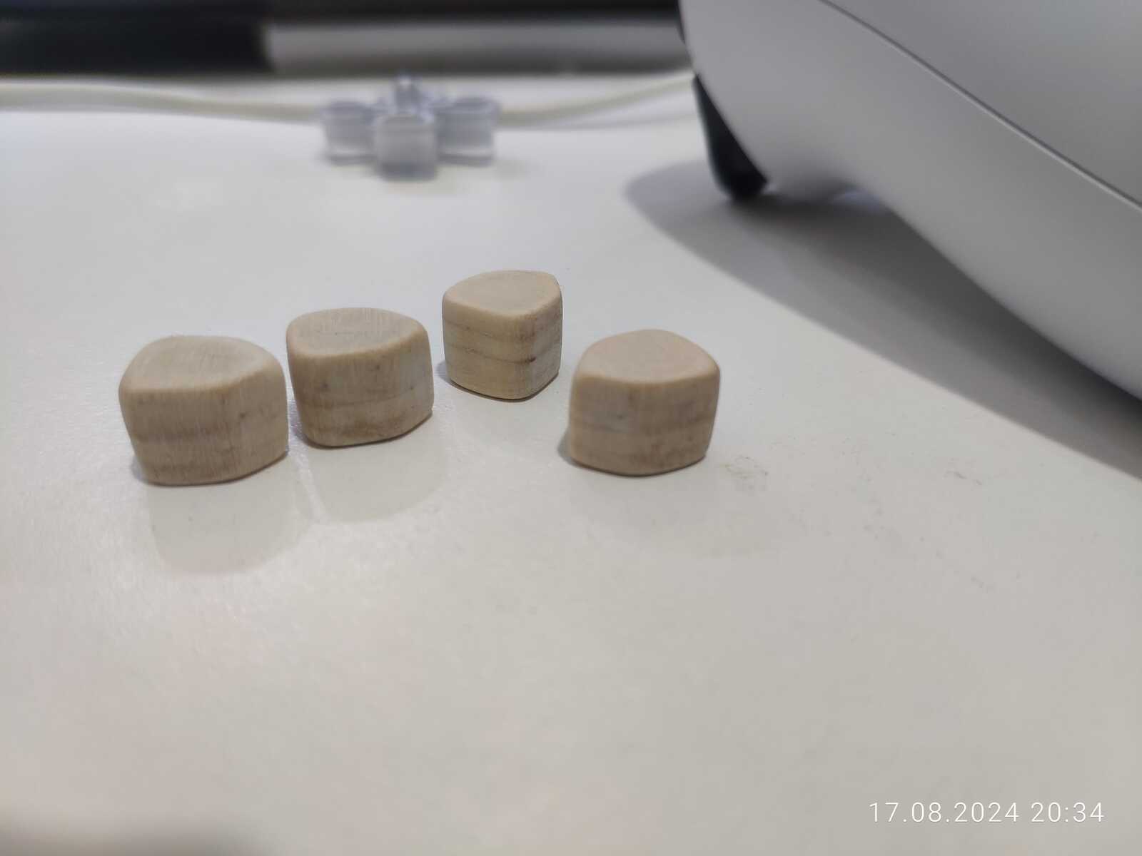 Для создания большого количества кнопок конечно предпочёл бы изготовить длинную заготовку в нужной форме, а дальше просто нарезать на сегменты нужной высоты, но сейчас мне явно не нужно больше деталей, чем уже сделал, так что на этом закончим.