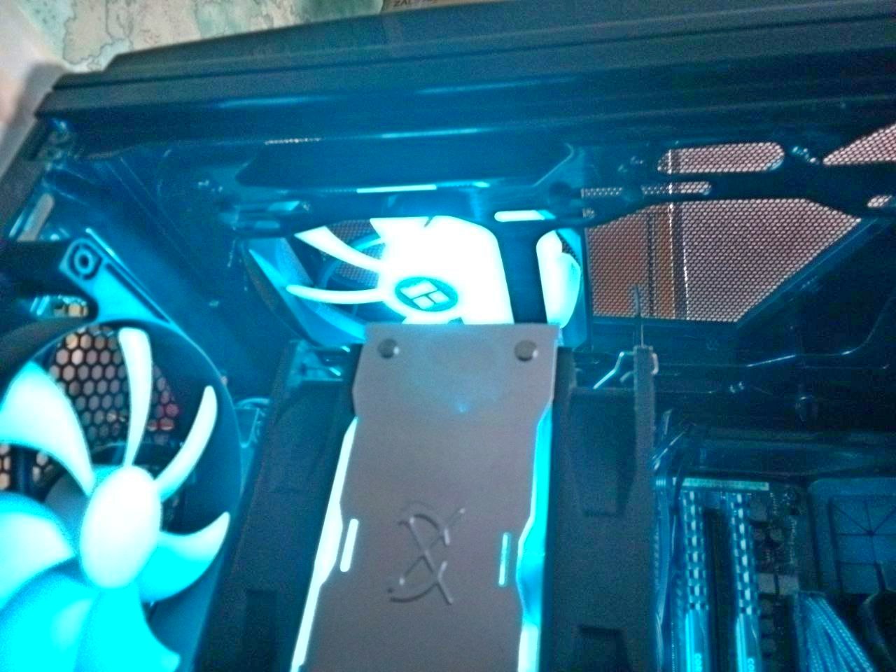Регулировка данного вентилятора будет осуществляться через реобас. Длины провода для подсветки хватило впритык (корпус формата full-tower), но без удлинителя провести кабель сзади не получится.