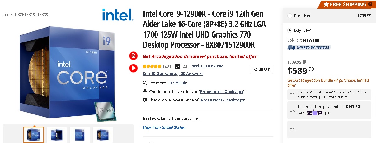 Один из крупных интернет-магазинов в США - NewEgg предоставил возможность проводить оплату своих товаров в Bitcoin, Litecoin, Bitcoin cash и даже Dogecoin. И вот что можно собрать один раз и надолго в середине августа 2022 года. Ультимативный на сегодняшний день камень - Intel Core i9-12900K
