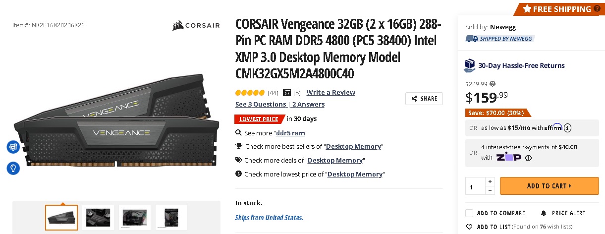 Оперативная память от Corsair 2х16 ГБ DDR5 4800 MHz