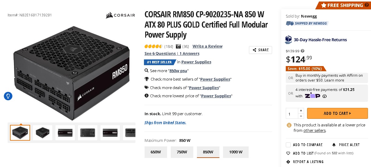 Запитать всё это добро я бы доверил CORSAIR RM850