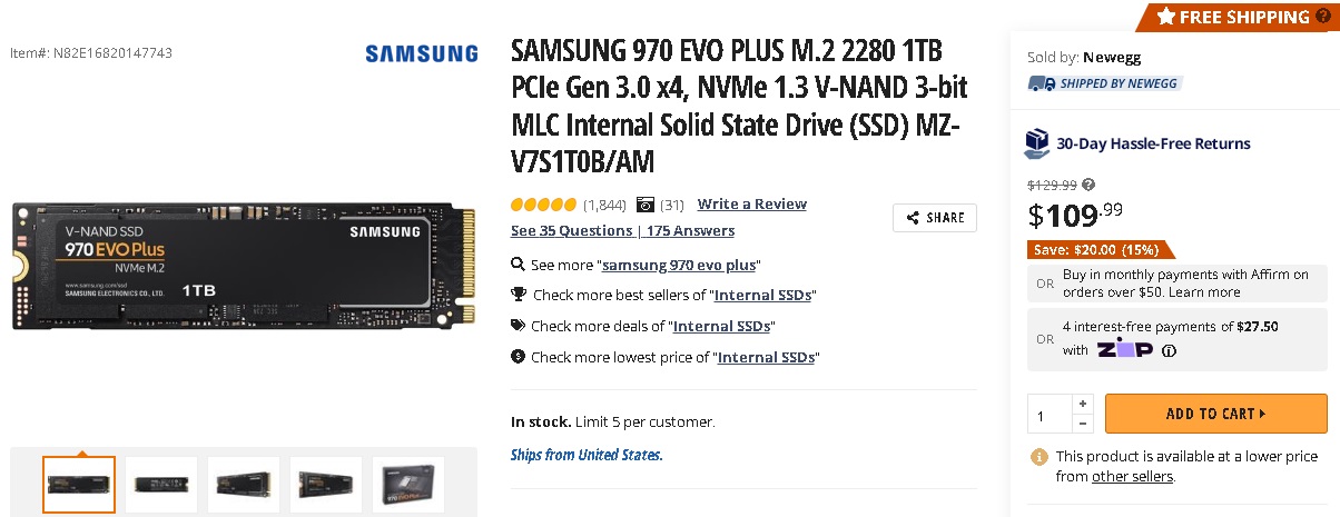 В качестве накопителя стоит использовать M2 NVMe накопитель, одним из самых популярных решений является SAMSUNG 970 EVO PLUS 1 ТБ