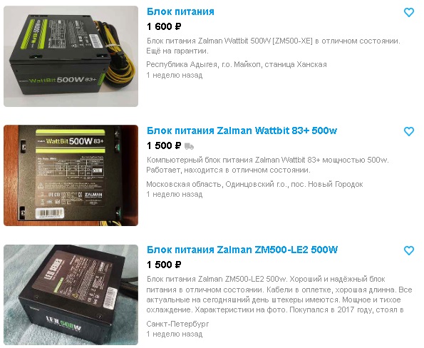 Нам будет достаточно приличного блока питания с мощностью 500w. Естественно и блок питания и видеокарту необходимо будет проверить с продавцами в условиях нагрузки, и досконально осмотреть на наличие пайки ремонтов и так далее, подробнее можете ознакомиться в данной статье.