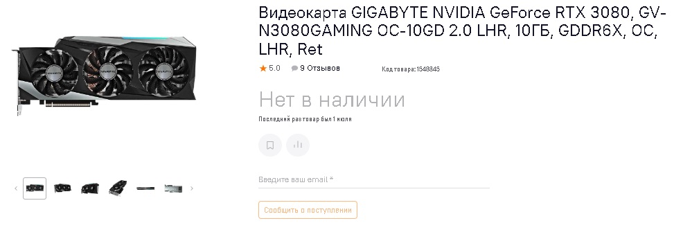 И тут мы возвращаемся к видеокартам. В течение дня отечественные ритейлеры начали пропорционально поднимать цены на свои видеокарты, некоторые модели судя по всему уже раскупили, как например:Gigabyte Nvidia GeForce RTX 3080 10GB