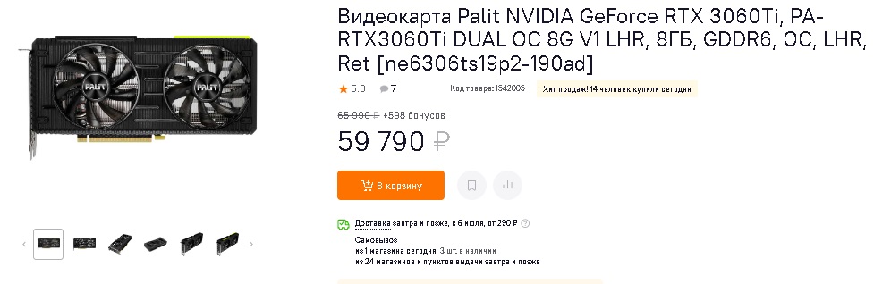 Или же вот модель, которую мы уже сегодня разбирали в предыдущей статье, Palit Nvidia GeForce RTX 3060Ti, чья окупаемость для майнеров составляла более трёх лет.