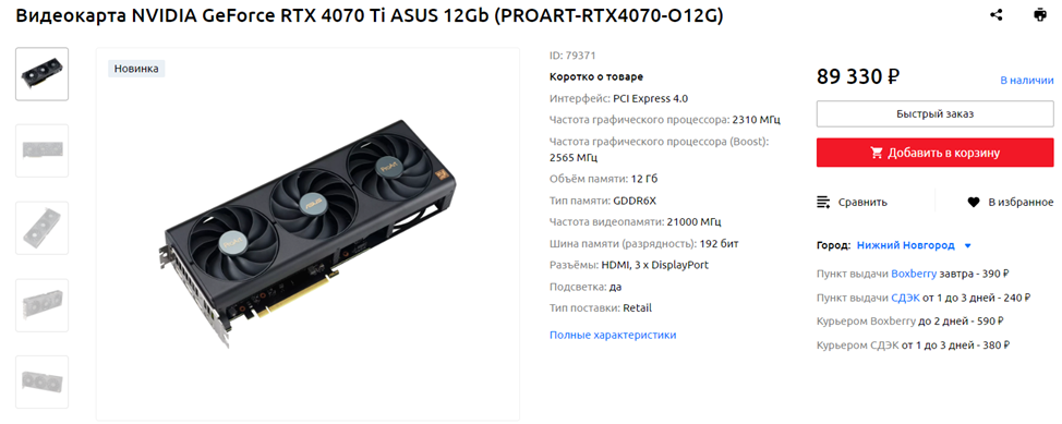 NVIDIA GeForce RTX 4070 Ti 12 ГБ