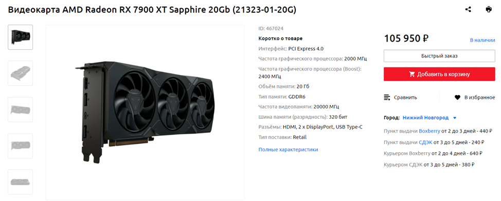 AMD Radeon RX 7900 XT 20 ГБ