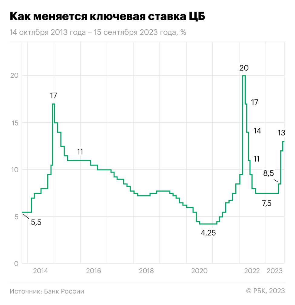 Когда рубль пересек психологически важную и вызывающую легко отслеживаемое при помощи опросов и мониторинга соцсетей недовольство граждан отметку в 100 единиц за доллар, в ситуацию вмешался Банк России. Чтобы не допустить дальнейшего снижения реальных доходов населения, а также ускорения инфляции, регулятор резко увеличил ключевую ставку – сначала с 8.5% до 12% в августе, а потом с 12% до 13% в сентябре. Результат, впрочем, оказался нестабильным и кратковременным – на время задержавшись, рубль продолжил падение.