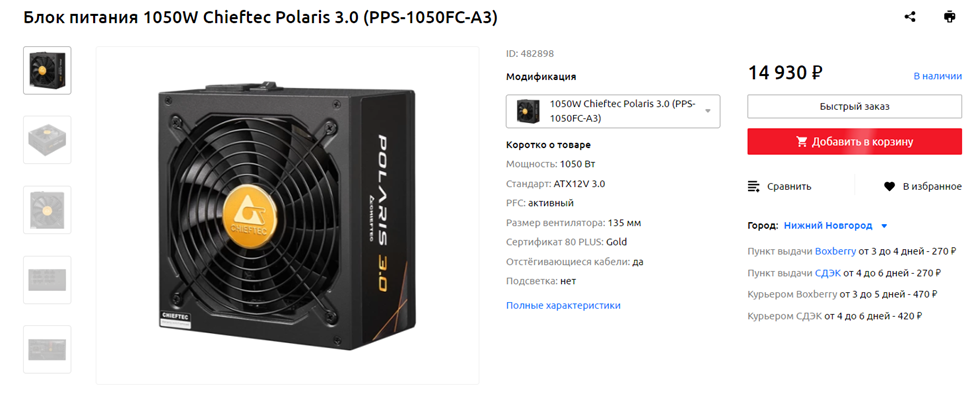 - Пожелание. Высокий КПД – в идеале, соответствующий как минимум стандарту 80 Plus Platinum. Но как минимум Gold.