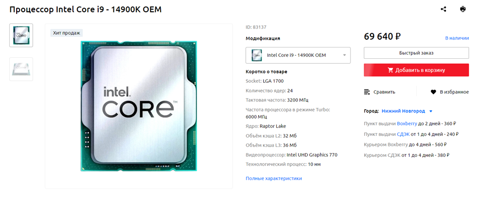 Обогреватель зимой не нужен: Intel Core i9-14900K OEM