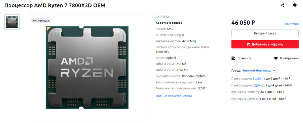 Шикарен в играх, плох в работе: AMD Ryzen 7 7800X3D OEM
