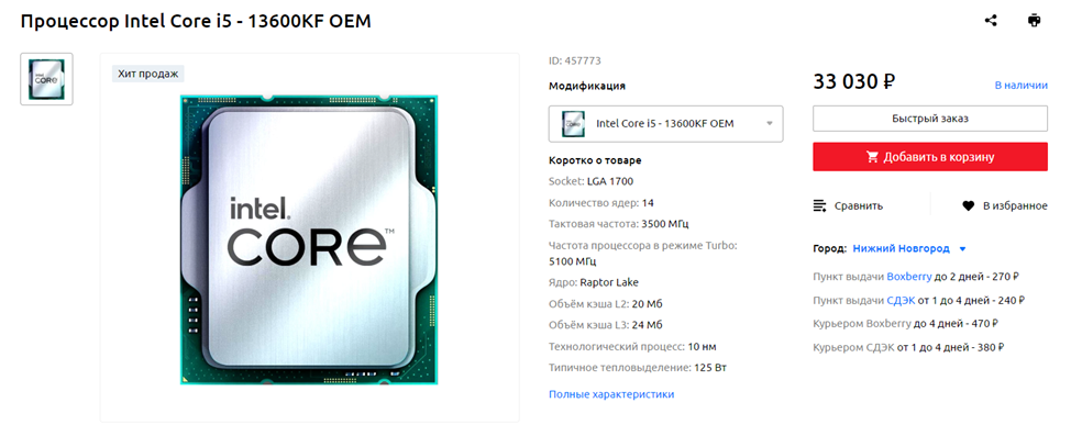 Один из лучших CPU среднего ценового сегмента: Intel Core i5-13600KF OEM