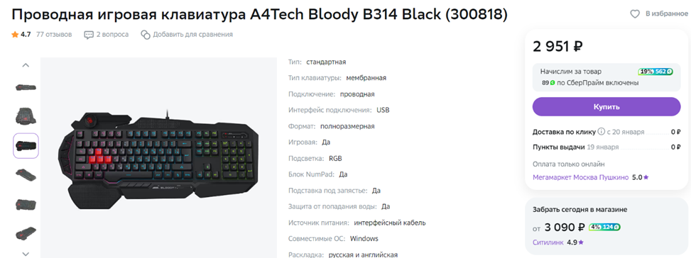 Любители MMORPG и других онлайн-игр хорошо знают, как порой не хватает стандартных кнопок на клавиатуре для того, чтобы «забиндить» все способности. В таких случаях на помощь приходят клавиатуры с дополнительными кнопками – такие, как A4Tech Bloody B314. Если вы не фанат шумной механики и предпочитаете традиционные мембранные клавиатуры с их тихим мягким звуком хода клавиш, то эта модель вполне может вам понравиться. Помимо дополнительных клавиш и агрессивного геймерского дизайна, она может похвастаться красочной подсветкой с несколькими режимами и уровнями яркости. Механических клавиатур в ассортименте «Мегамаркета» тоже хватает — выбрать подходящую можно здесь.