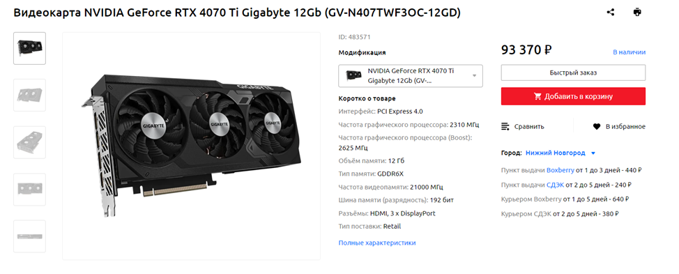 NVIDIA GeForce RTX 4070 Ti 12 ГБ