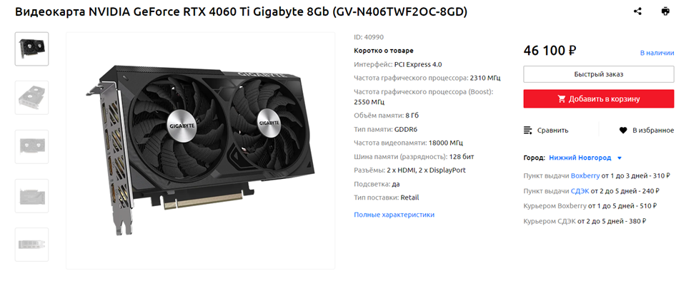 NVIDIA GeForce RTX 4060 Ti 8 ГБ