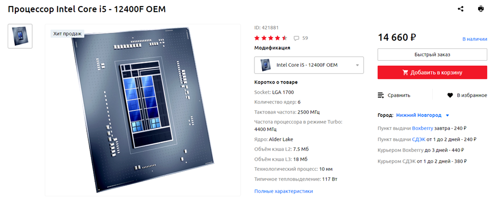 Начнем, как обычно, с процессора. Здесь у нас три основных варианта — народные шестиядерники Intel Core i5-12400F и AMD Ryzen 5 5600 или более новый Ryzen 5 7500F. «Семь тысяч пятисотый», впрочем, стоит сразу отбросить — материнские платы сокета AM5 довольно дороги, да и переплачивать за оперативную память стандарта DDR5 в обозначенном бюджете не слишком рационально. Полагаю, в качестве варианта по-умолчанию стоит выбрать Intel Core i5-12400F, благо, за месяц он подешевел почти на 500 рублей. Это энергоэффективный, холодный и достаточно производительный CPU, по сути, лишенный каких-либо серьезных недостатков. Конечно, на рынке присутствуют и более современные решения, но стоят они значительно дороже, а бутылочным горлышком конфигурации в игровых сценариях использования в любом случае выступает не процессор, а видеокарта. Соответственно, максимум средств разумно вкладывать именно в нее.