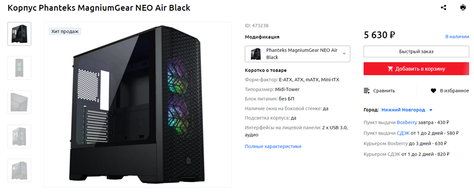 Разместить все перечисленное железо можно, например, в корпусе Phanteks MagniumGear NEO Air. Это современный, просторный, продуманный и стильно выглядящий кейс, по-умолчанию оснащенный двумя предустановленными вентиляторами – тихими, но достаточно эффективными. В таком корпусе можно собрать и гораздо более производительную и энергоемкую конфигурацию – с продуваемостью у него все отлично. Также среди преимуществ шасси отмечу отличную организацию пространства, высокое качество используемых компонентов и сборки, наличие пылевых фильтров и системы прокладки кабелей. В своей ценовой категории Phanteks MagniumGear NEO — один из лучших корпусов по совокупности характеристик, особенно с учетом подорожания ряда конкурентов.