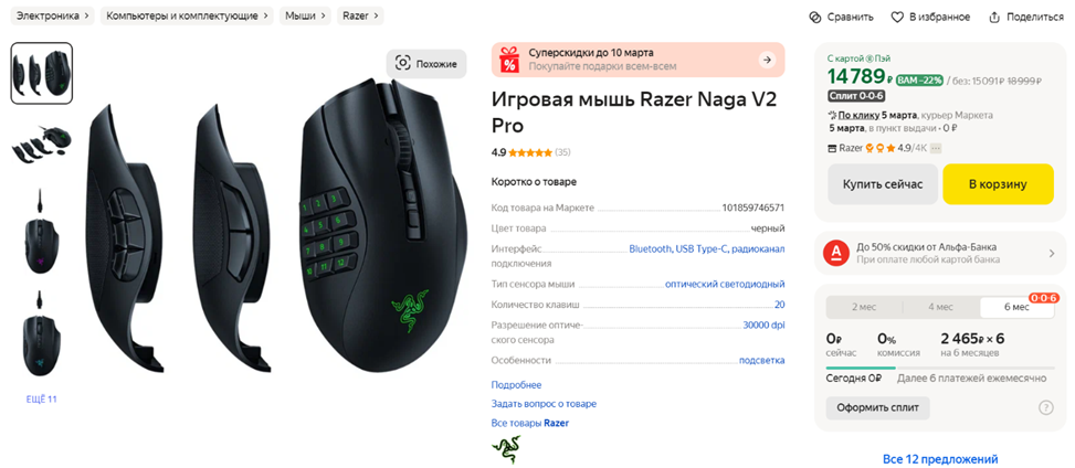 Игровая мышь: Razer Naga V2 Pro