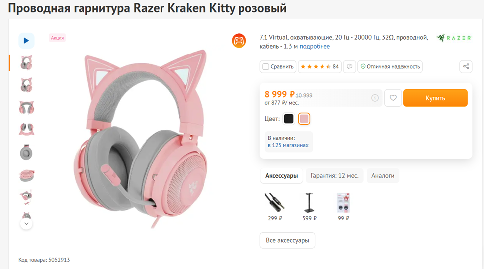 Гарнитура Razer Kraken Kitty