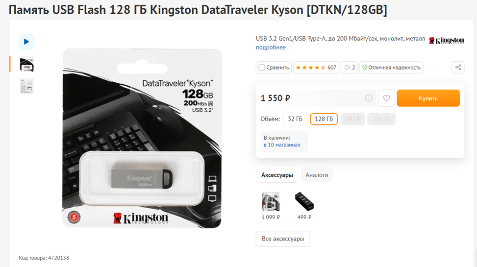 Флеш-накопитель Kingston DataTraveler Kyson 128 ГБ или другой