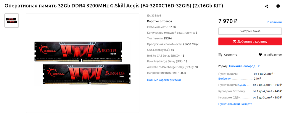 По поводу оперативной памяти в рамках статей рубрики «Народный ПК» я высказывался неоднократно – по моему мнению, для комфортного гейминга в 2024 году необходимо 32 гигабайта ОЗУ. Конечно, в большинство игр удастся беспроблемно поиграть и с 16 гигабайтами, но с рядом ограничений. Например, вы не сможете держать открытыми одновременно с игрой пару браузеров с кучей вкладок, мессенджеры, игровые сервисы вроде Steam и другой софт. Или сможете, но он будет глючить, потому что операционная система будет отбирать у него память ради активного процесса. А файл подкачки, даже размещенный на быстром SSD – это все-таки не ОЗУ, особенно с учетом того, что действительно быстры твердотельные накопители лишь в пределах SLC-кэша. Так вот, к чему это я. А к тому, что стоит сразу купить пару модулей оперативной памяти по 16 гигабайт. Оптимальным вариантом с точки зрения соотношения цены и пропускной способности выглядят наборы с частотой 3200 МГц и таймингами 16-18-18 или 16-20-20. Такие, как приведенный в качестве примера G.Skill Aegis. И еще момент. Избегайте памяти от Noname-брендов. За последние пару лет ее количество в наших магазинах и на маркетплейсах заметно увеличилось.