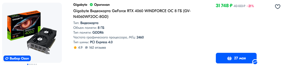 Видеокарта: NVIDIA GeForce RTX 4060 8 ГБ