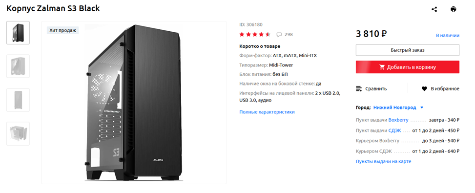 И последний компонент сборки, в котором будут размещаться все остальные – это корпус. Финансов у нас осталось немного, около 4 тысяч рублей, но и за такие деньги можно купить неплохой кейс для игровой конфигурации с невысоким или даже средним энергопотреблением и тепловыделением. Один из вариантов — Zalman S3. Шасси оснащено предустановленным 120-миллиметровым вентилятором, к которому при желании можно добавить еще 5-6. Также к преимуществам корпуса можно отнести наличие базовой системы прокладки кабелей и пылевых фильтров. Есть у модели и недостатки — тонкий металл и «глухая» переднюю панель. Впрочем, на сборки с высоким тепловыделением кейс и не рассчитан. Для нашей его хватит с лихвой, причем даже с одним вентилятором.
