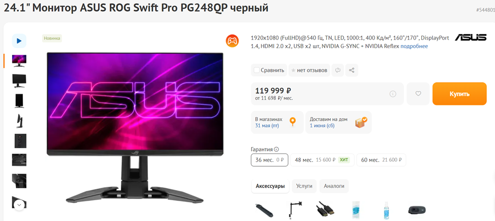 24.1" ASUS ROG Swift Pro PG248QP 540 Гц