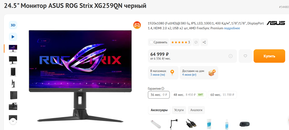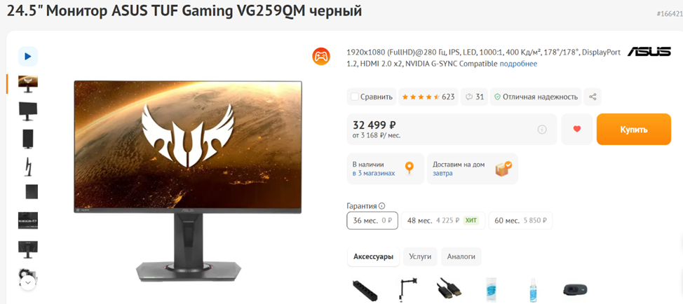 - Всего за 30-40 тысяч рублей можно купить ASUS TUF Gaming VG259QM на той же матрице, хотя и с частотой 280 Гц, а не 360 Гц