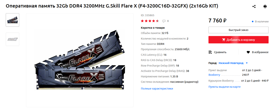 Хорошей игровой конфигурации ПК в 2024 году требуется 32 гигабайта оперативной памяти, причем функционирующей в двухканальном режиме. Это доказано многочисленными тестами – например, такая AAA-игра, как Hogwarts Legacy может использовать до 22 и даже до 24 гигабайт ОЗУ. А ведь операционной системе и софту тоже нужна память. Файл подкачки, даже расположенный на SSD, в таких случаях не спасет — стоит сразу приобрести комплект из пары шестнадцатигигабайтных модулей, которого, вероятно, хватит на весь жизненный цикл системы. Рекомендую смотреть в сторону наборов с частотой 3200 МГц и таймингами 16-18-18 или 16-20-20. Это достаточно быстрая, и при этом недорогая память. Только не заказывайте планки сомнительных китайских брендов на маркетплейсах. Возможно, таким образом вы сэкономите тысячу или даже полторы, но если в этих планках будут дефектные чипы, то вы замучаетесь искать причину «экранов смерти», вылетов и зависаний. Лучше взять комплект от проверенного бренда – Kingston, Crucial, G.Skill, Patriot, TeamGroup, Silicon Power, и так далее.