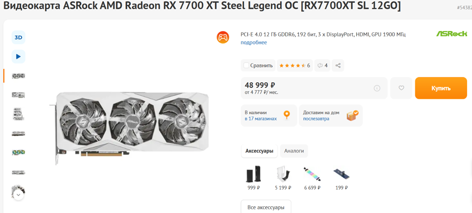 Видеокарта: ASRock AMD Radeon RX 7700 XT 12 ГБ